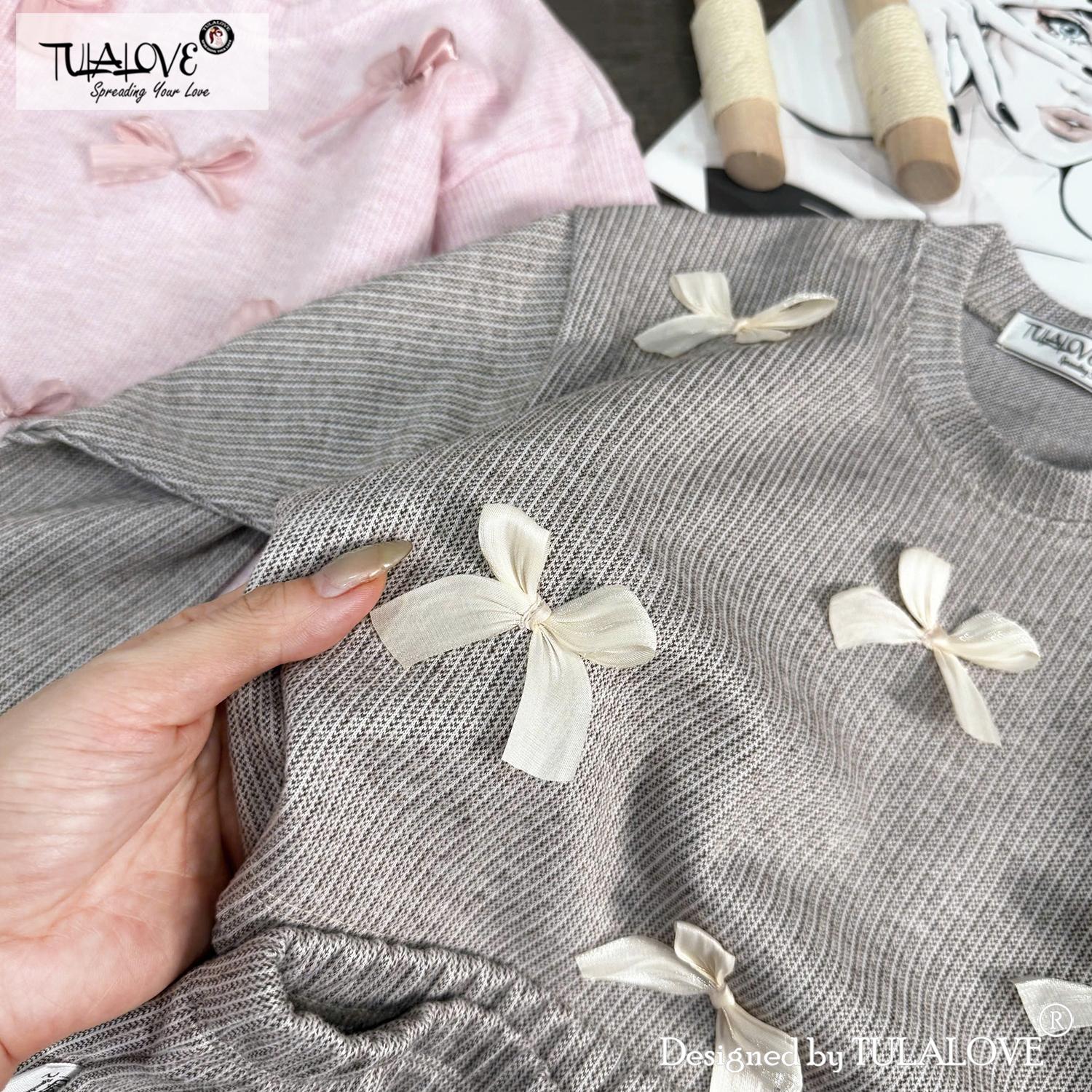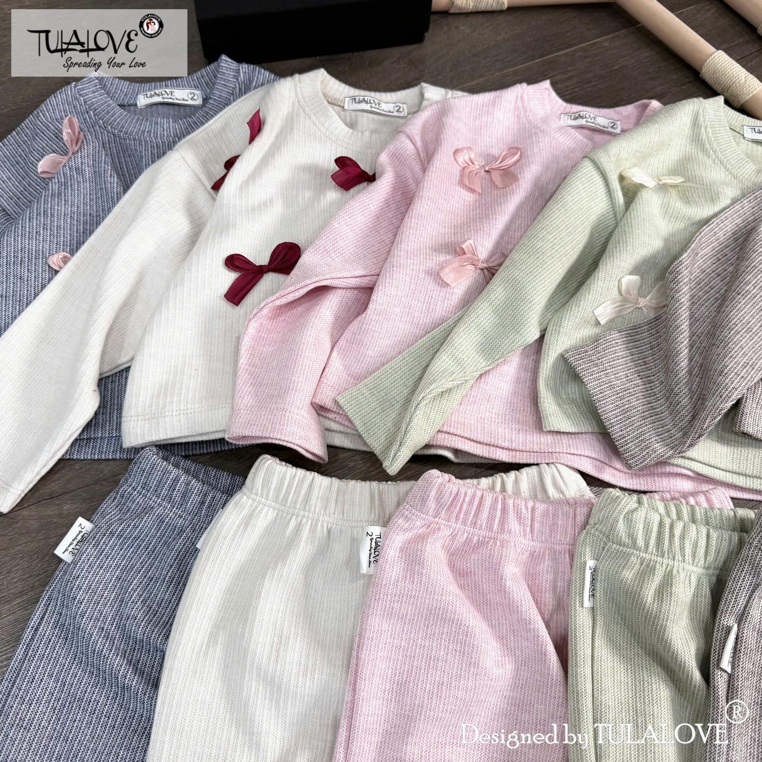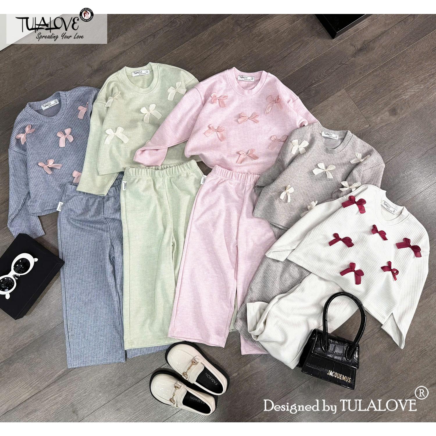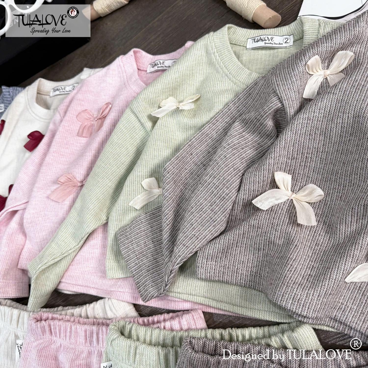 • NGUỒN GỐC VÀ XUẤT XỨ: Sản phẩm Bộ nỉ suông gắn nơ thu đông cho bé gái được thiết kế, sản xuất và cung cấp tại Việt Nam bởi Tulalove.